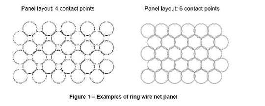 结构组成:由单根钢丝弯折成环状,每个环与相邻4个或6个环连接形成网状面板 。